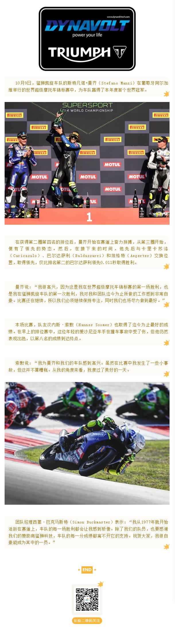賽事播報|曼齊贏得世界超級摩托車錦標賽首個冠軍
